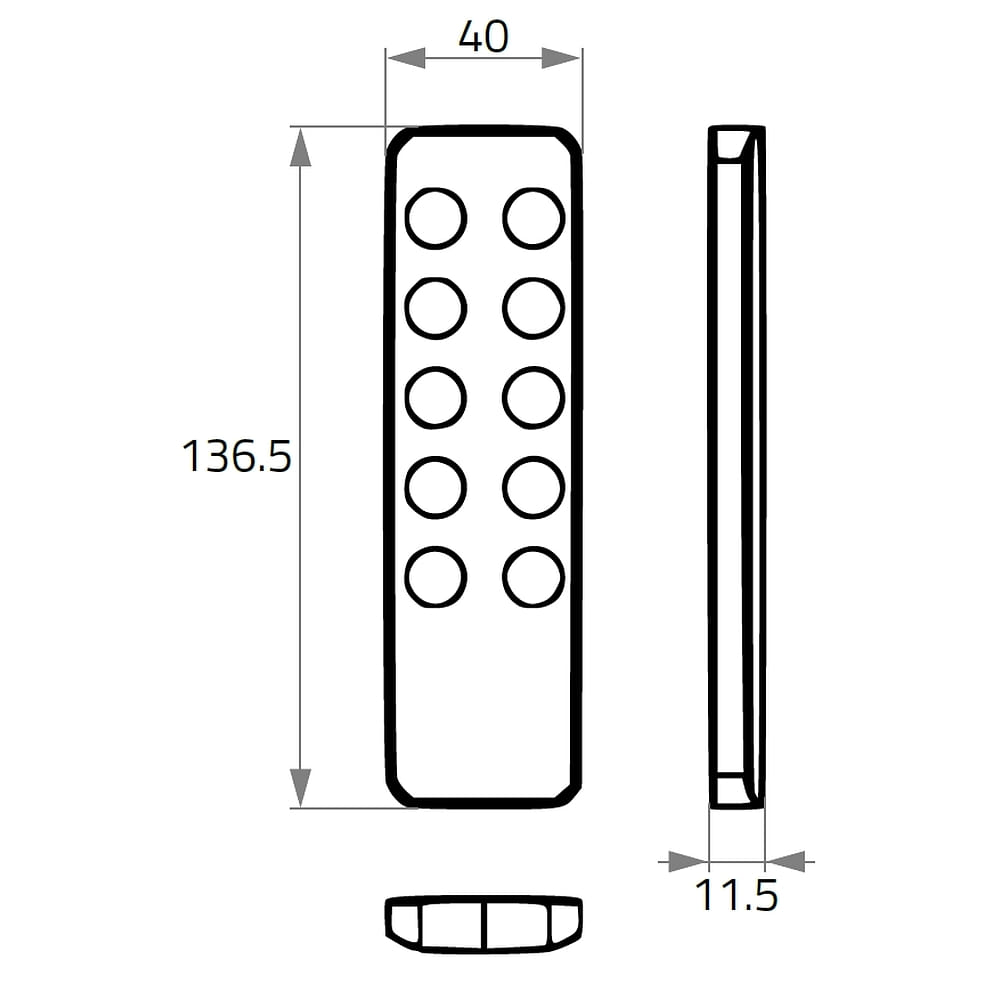 The size of the remote control is 13.7 x 4 x 1.2 cm and it has an IP20 protection class. The accessories for the receiver are included, but the receiver must be purchased separately.