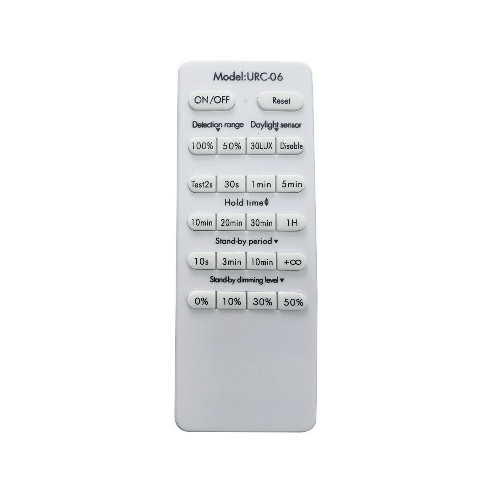 The remote control for the LED moisture-proof luminaire SHARK-X with motion sensor is the ideal accessory to adjust the lighting to your needs. With the remote control, you can program the motion sensor and adjust the range and values for the brightness sensor.