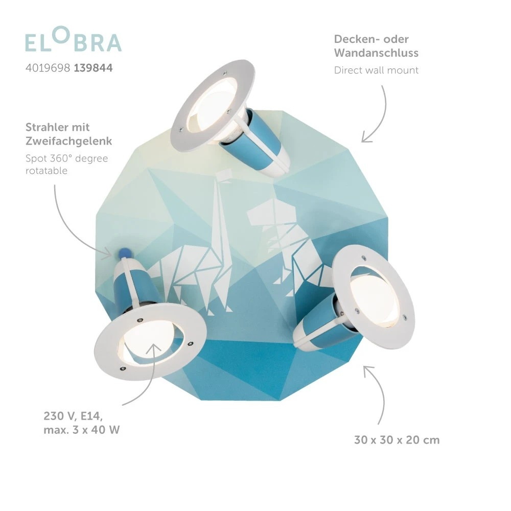 As a brand, Elobra stands for high-quality products and innovative designs. The Rondell DINOS Ceiling Light is no exception and impresses with its durability and reliability. The blue painted housing adds a fresh and modern touch to any room.