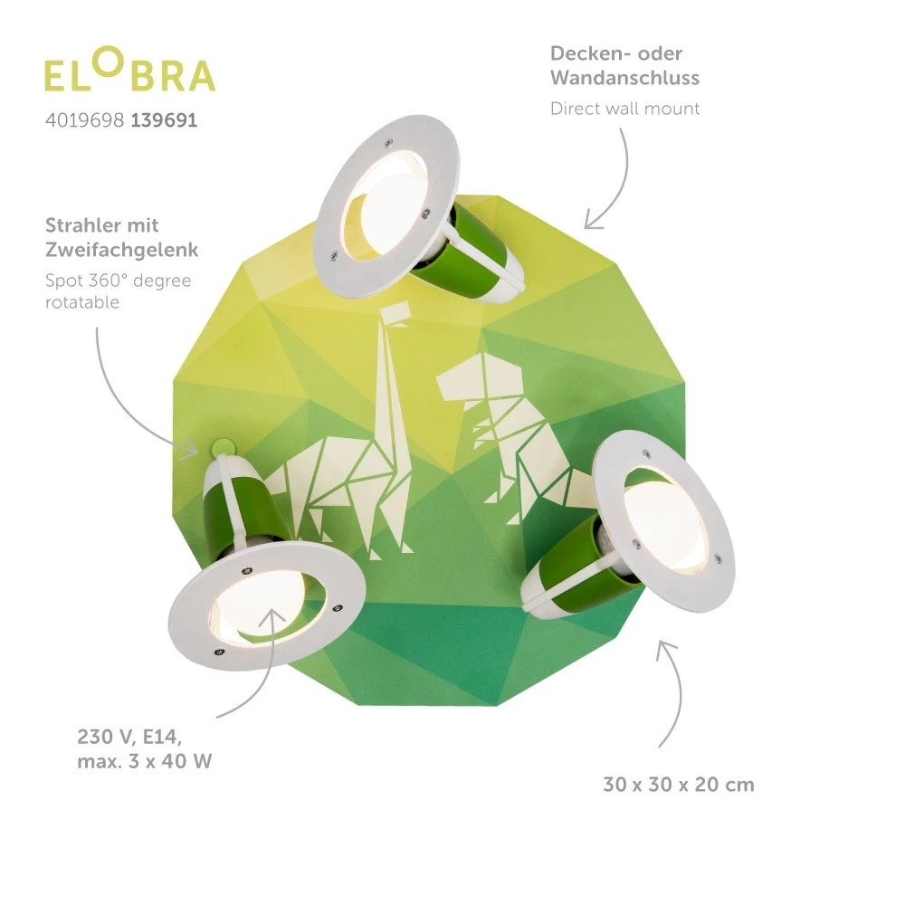 Rondell DINOS, 3x E14, green