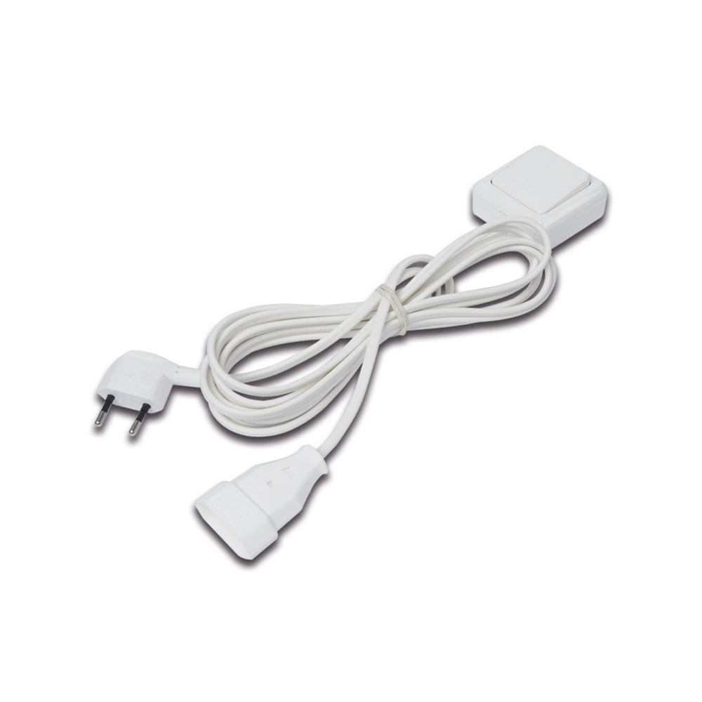 SAQ switch, surface mount, 6cm square, IP20, 220-240V, max. 2.5A, with 200cm Euro plug + 200cm Euro coupling, white