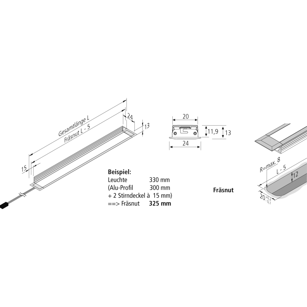 Slim LED luminaire Dynamic LED IN-Stick SF, recessed furniture mount, IP44, 33cm, 24V DC, 5.2W 2700-5000K