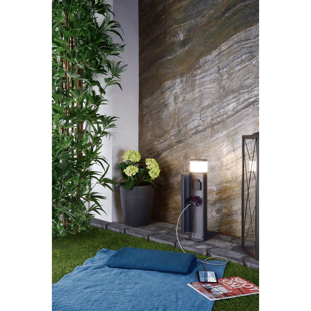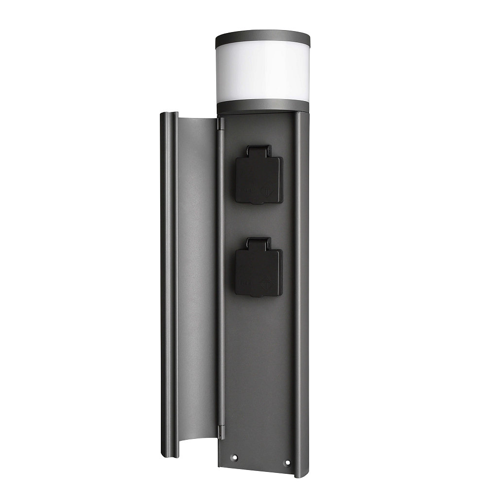 Socket tower 2-fold, IP44, 220-240V AC / 50-60Hz, die-cast aluminum, with LED lighting, 4.8W 3000K 150lm