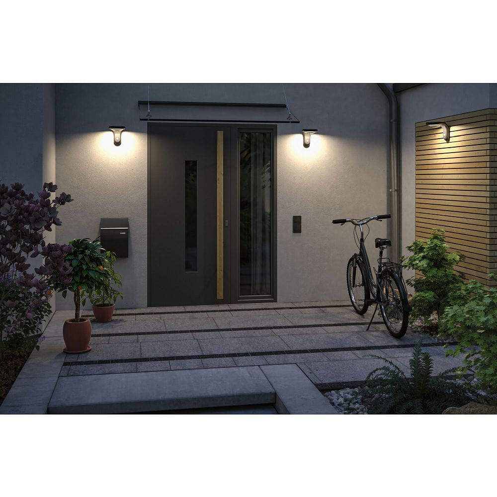 The solar wall light is ideal for illuminating entrance areas, patios, gardens, and other outdoor spaces. With the motion sensor, it also serves as a practical security measure to deter unwanted guests. With the LED Outdoor Solar Wall Light DSIKOLA PIR from Paulmann, you get a reliable and durable lighting solution for outdoor areas.