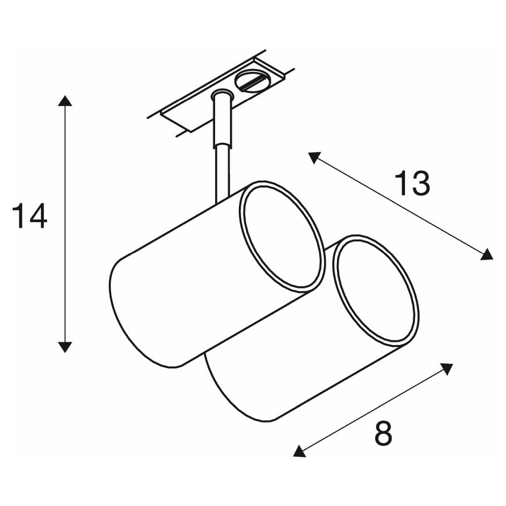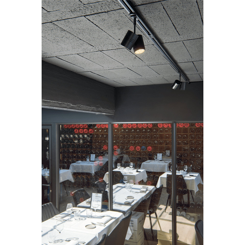 The BIMA 2 spotlight is made of aluminum and is characterized by its round shape. With a size of 8x13x14 cm (visible part) and a spot diameter of 6x8 cm, this spotlight is compact and discreet. The weight of 0.398 kg ensures easy installation on a track system connected to a 1-phase adapter.