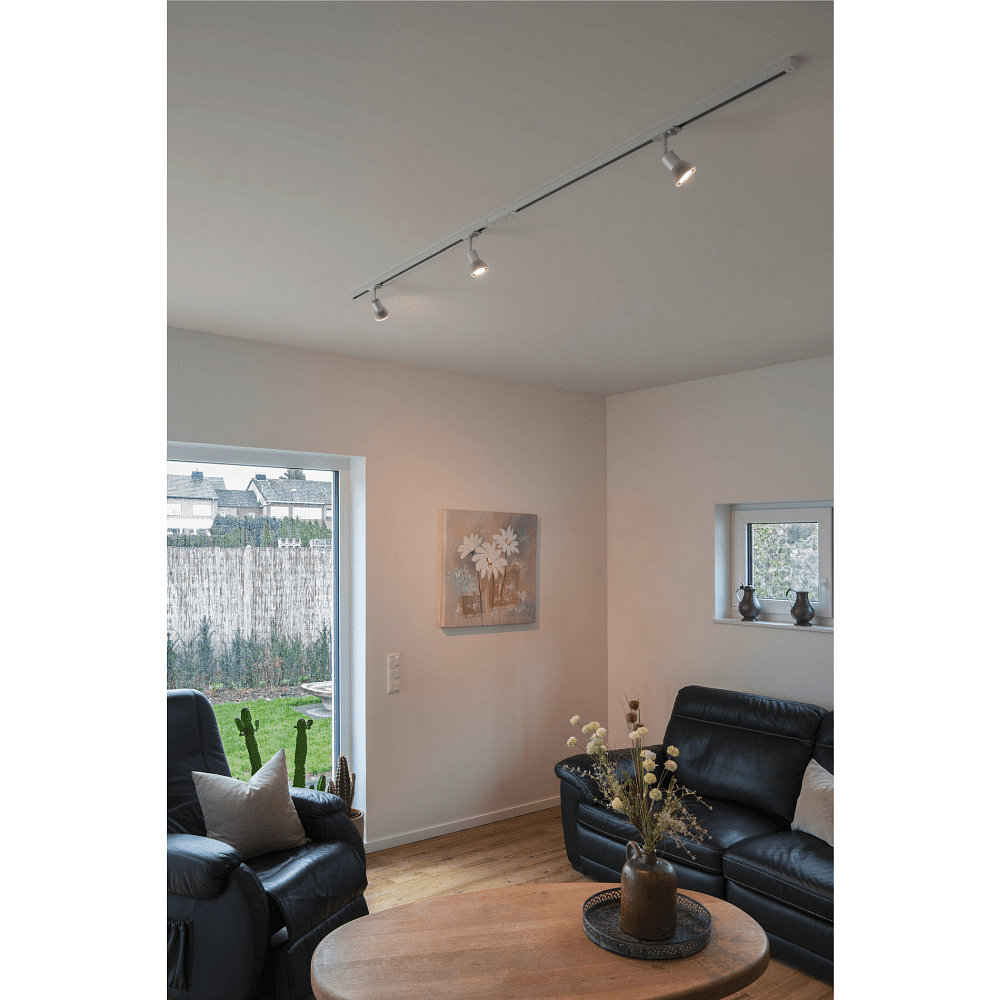 The 1-phase spotlight PURIA is ideal for indoor use. Whether in the living room, bedroom, or office, this spotlight skillfully highlights your rooms. The color white complements almost any style of interior design and creates a pleasant atmosphere.
