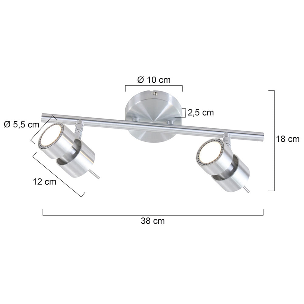 Thanks to the option to rotate and tilt the spotlights, you can create individual light accents and illuminate specific areas. The size of the spotlight bar is a total of 38x18x12 cm, with each individual spot lamp having a diameter of 5.5 cm.