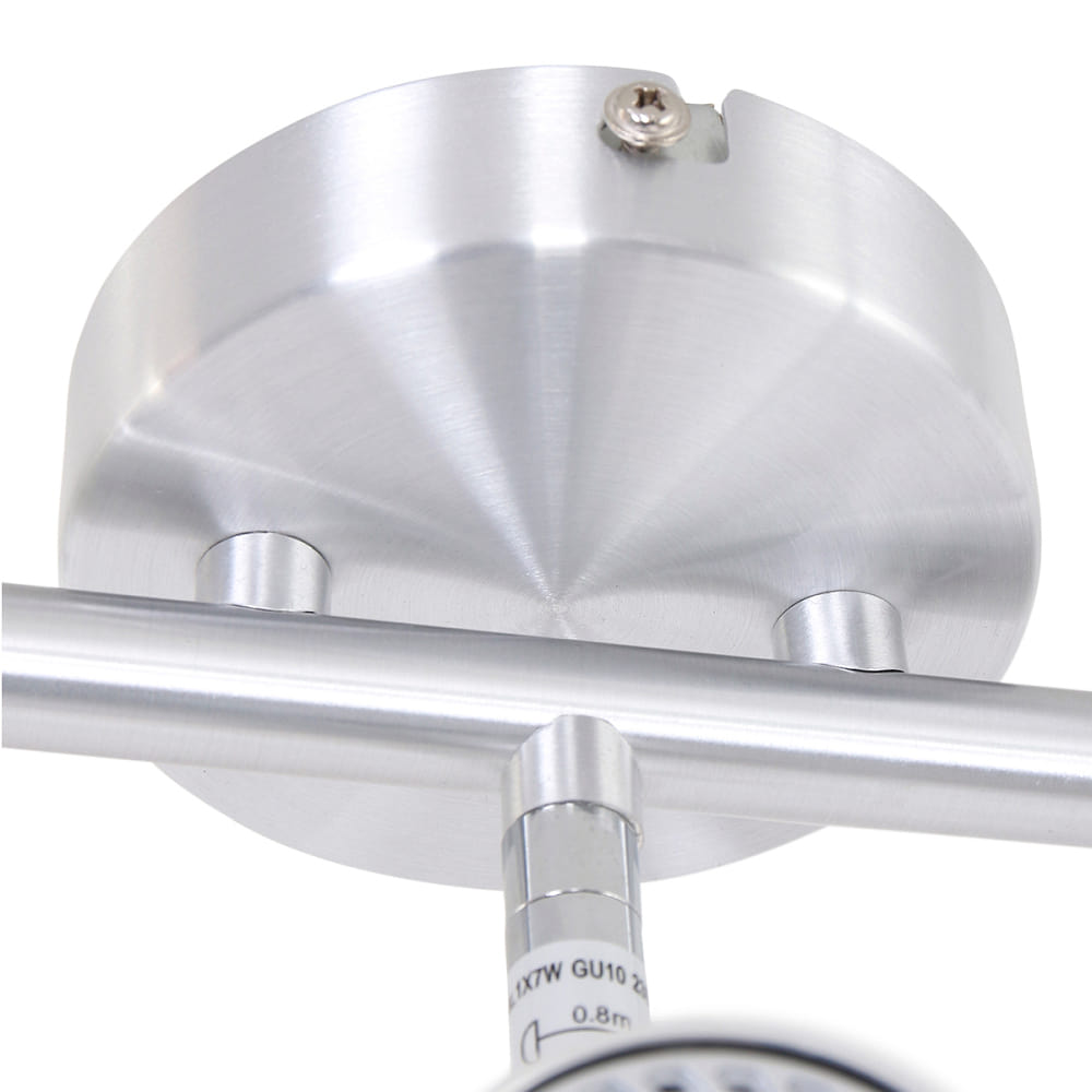 The spotlight bar is made of brushed metal and features a modern round light design. It is connected to the power grid with a clamp connection and is suitable for surface mounting on the ceiling. With a protection class 1 and an IP protection rating of IP20, the luminaire is safe and protected from dust and moisture.