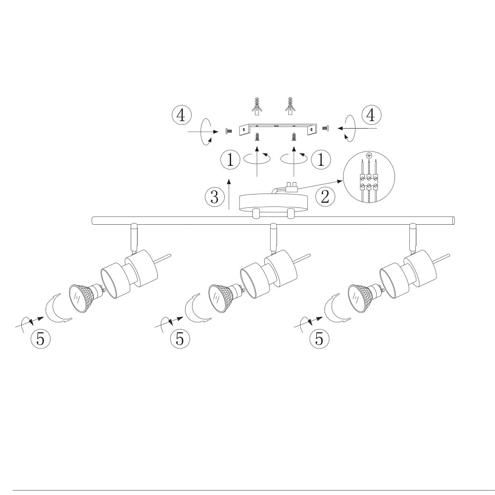 Thanks to the dimming function, you can adjust the light intensity of the spotlight bar according to your needs. The included GU10 LED lamps have a power of 7W and a light color from extra warm white to ultra warm white. The total lamp power is 1440lm, providing bright illumination. In addition, the LED lamps can be easily replaced.