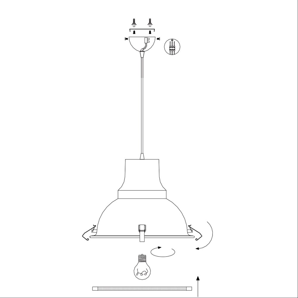 The light has an E27 socket and can be operated with a maximum of 60W bulb. Thanks to the adjustable height from 40 to 150cm, the pendant light can be individually adjusted.
