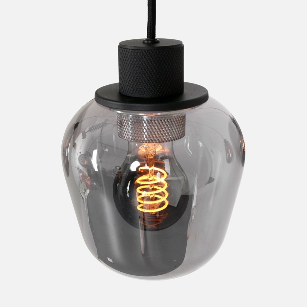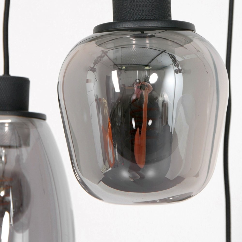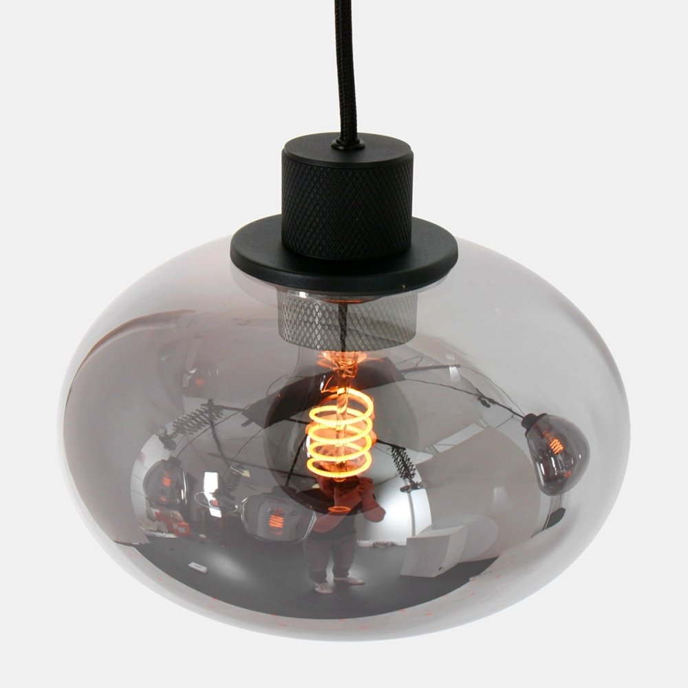 Steinhauer Pendant luminaire REFLEXION, 3 flames, smoky, fitting black