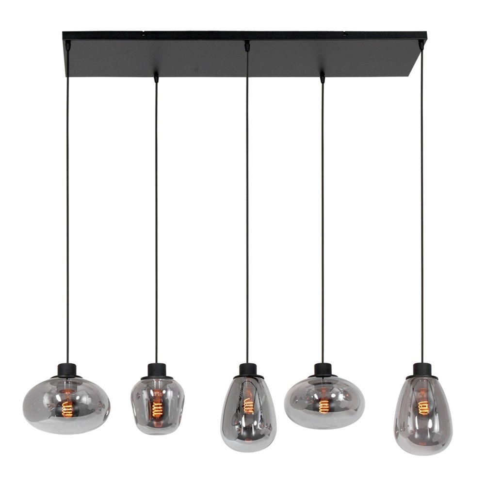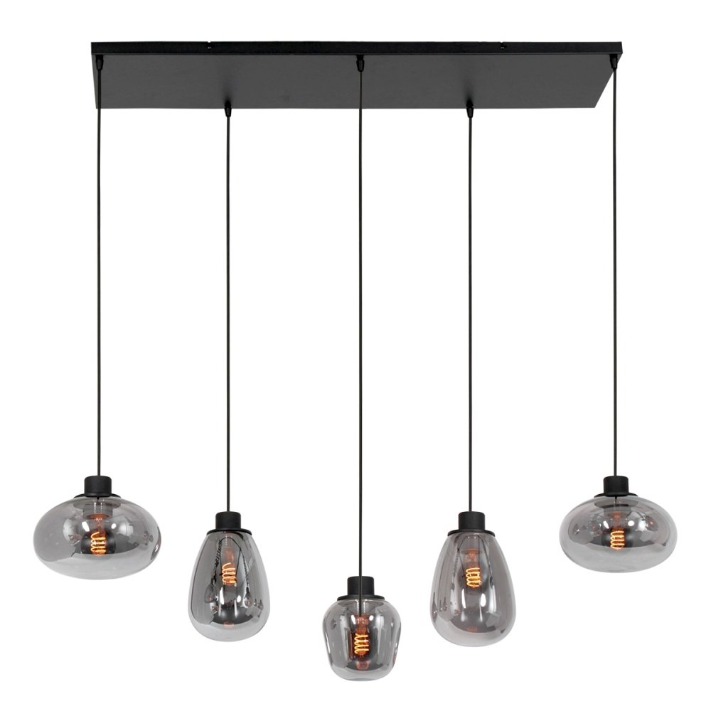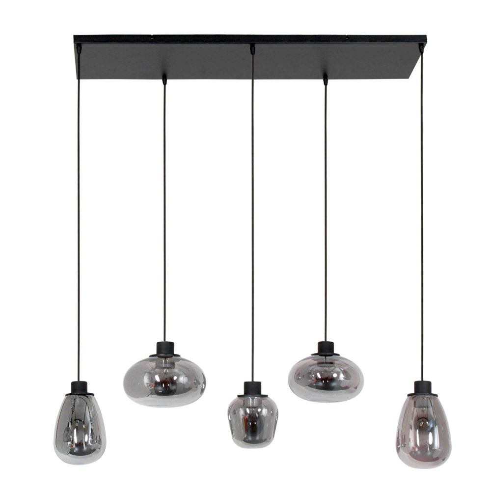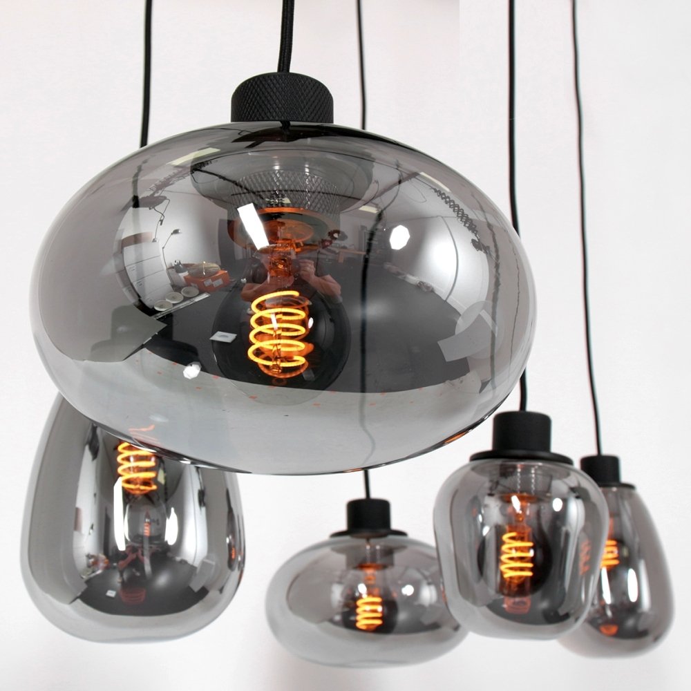 Steinhauer Pendant luminaire REFLEXION, 5 flames, smoky, fitting black