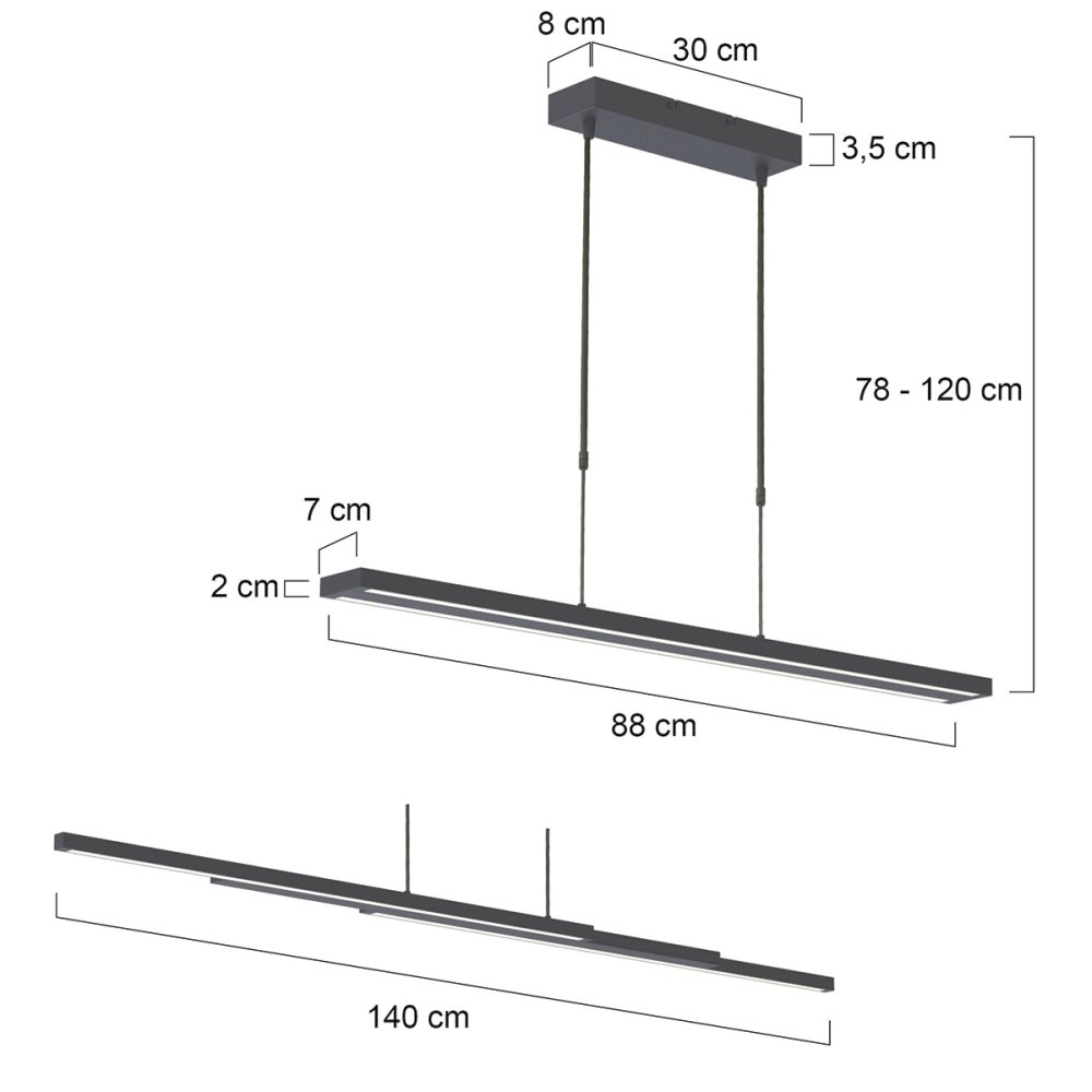 LED Pendant Light ZELENA, Up/Down, 80-140cm (extendable), 40W 2200-4000K (CCT) 3200+800lm, with Touch Dimmer