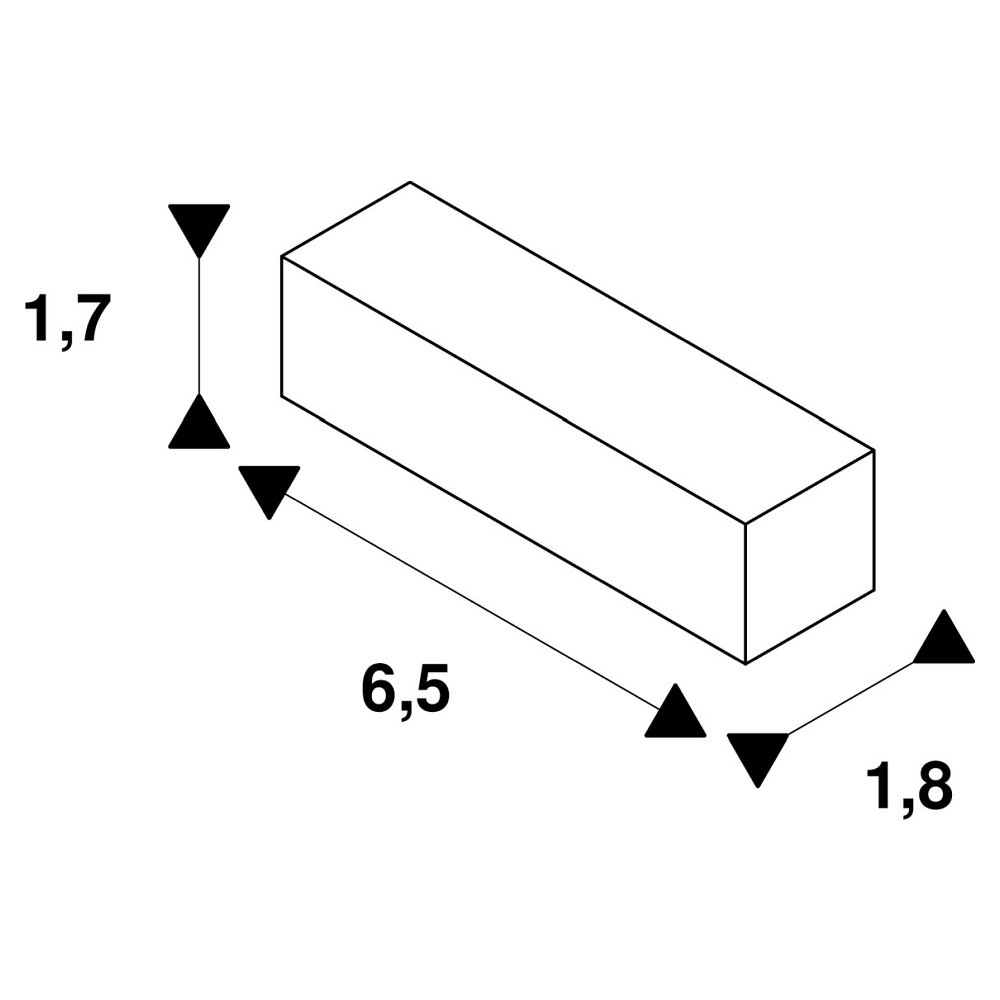The longitudinal connector operates at a voltage of 230V~ and has a maximum current load of 16A. The size is L/W/H: 6.5/1.8/1.7 cm and it is suitable for indoor use only. The connector has a protection class of 1.