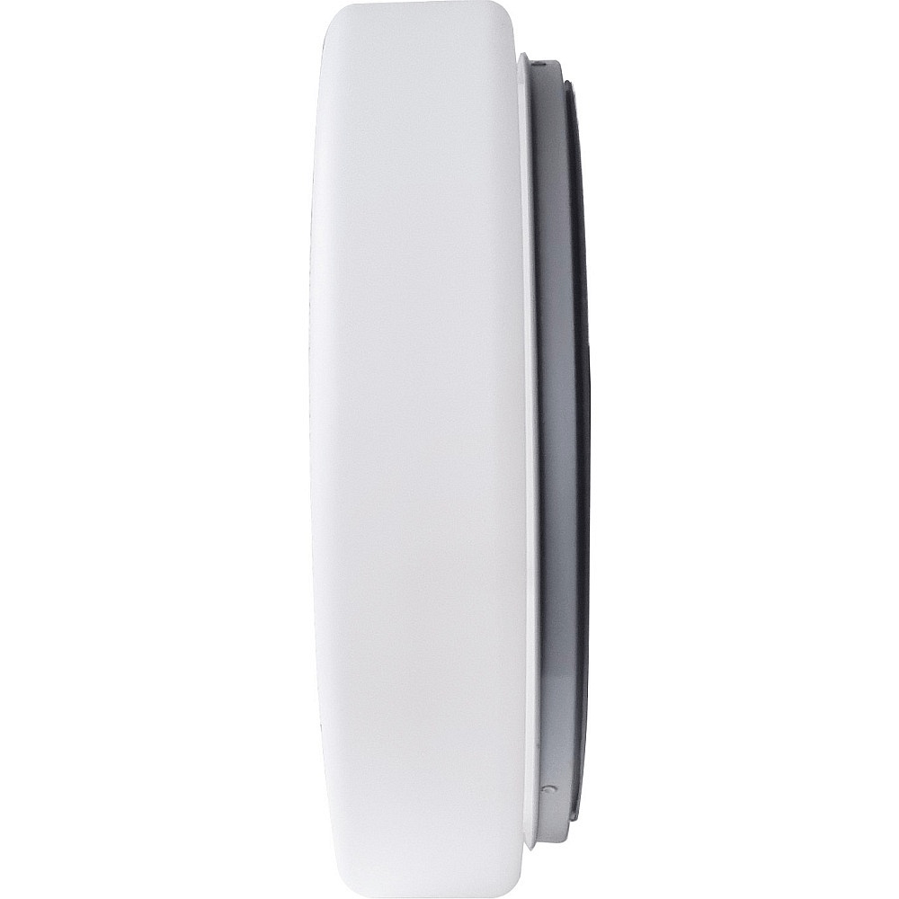 The LED surface-mounted luminaire DECKO FLAT from MEGATRON is a cylindrical, flat surface luminaire for indoor use, wet areas, and protected outdoor areas. It has a total diameter of 35 cm and a height of 9.6 cm. The light emission diameter is 35 cm with a height of 7.7 cm. The luminaire has a diameter of 30 cm and provides a flat, homogeneous light output.