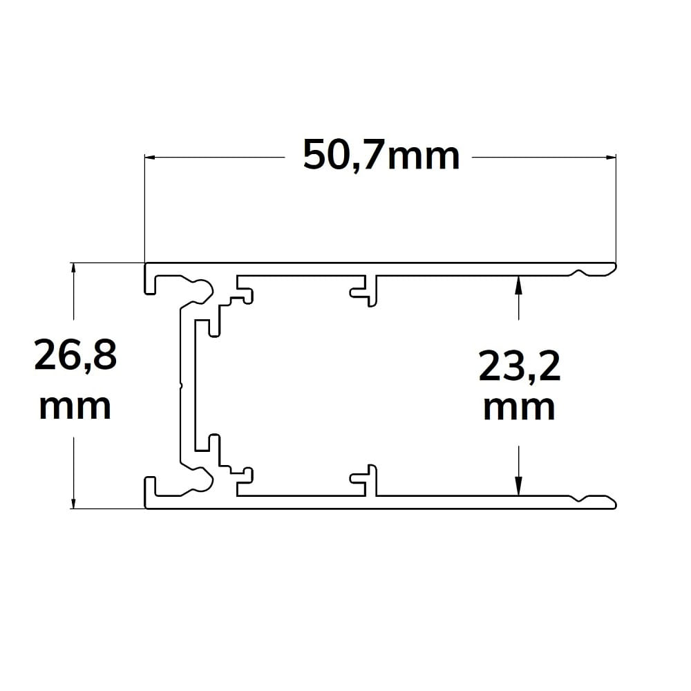 Thanks to the IP44 protection class, the surface-mounted rail is protected against dust and splashing water, making it ideal for use in wet rooms such as bathrooms or kitchens. This ensures a long service life and reliable function.