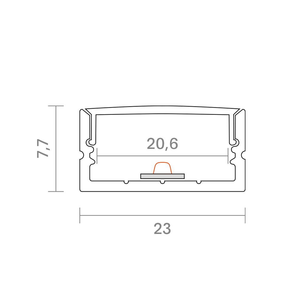 The mounting profile 20 is not only suitable for private use, but also for commercial purposes. Whether in the living room, office, or retail space - this profile provides pleasant lighting everywhere.