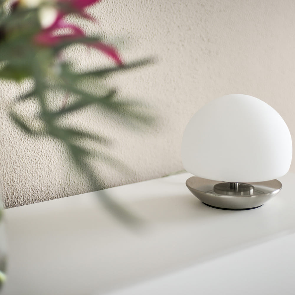 table lamp ANCILLA round, short, with touch dimmer G9 IP20, steel brushed dimmable