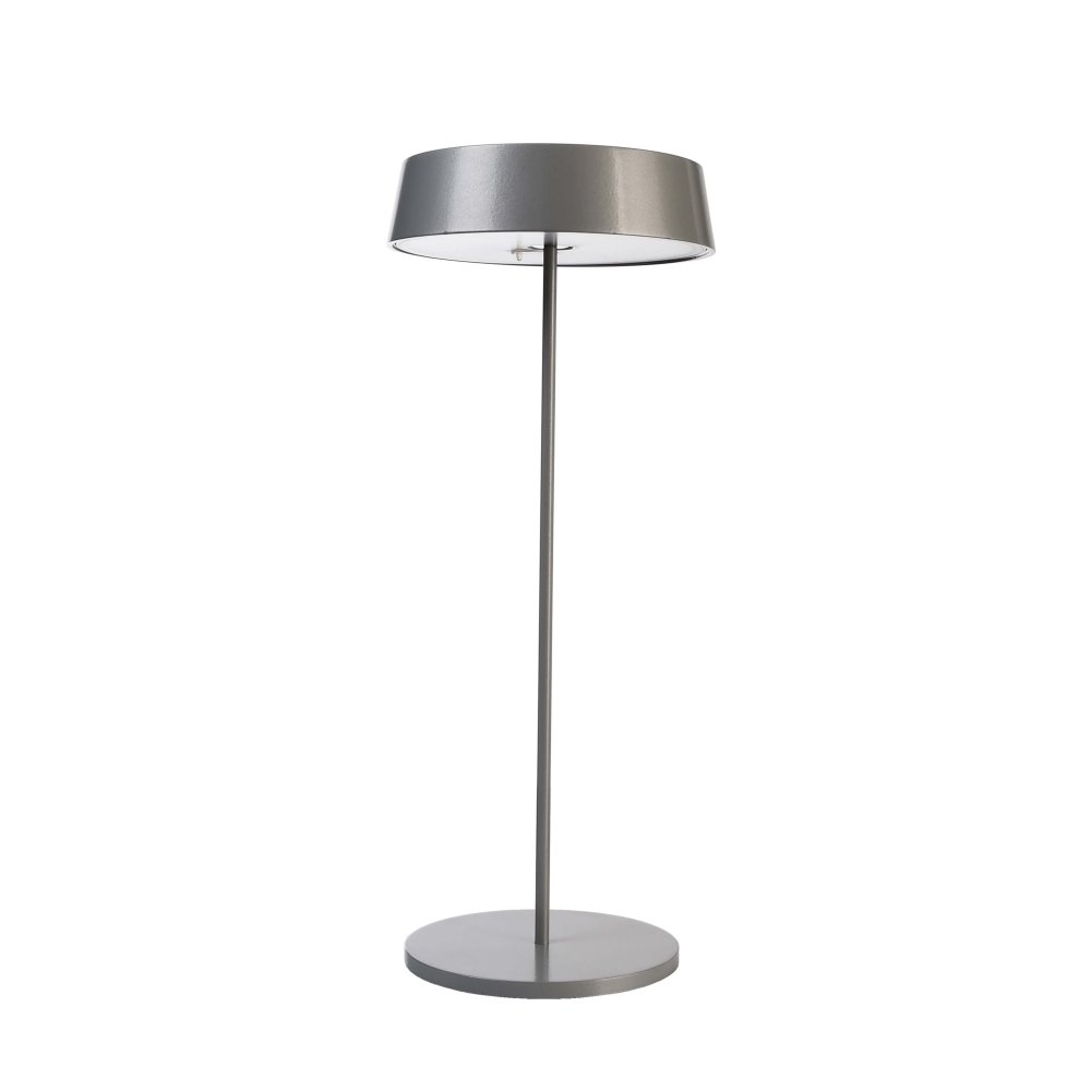 The LED rechargeable desk lamp MIRIAM impresses with its modern and simple design in elegant gray. Made from robust aluminum, it convinces not only with an appealing look but also with durability and stability. With a diameter of 12 cm and a height of 30 cm, the lamp fits perfectly on any table and creates a pleasant atmosphere.