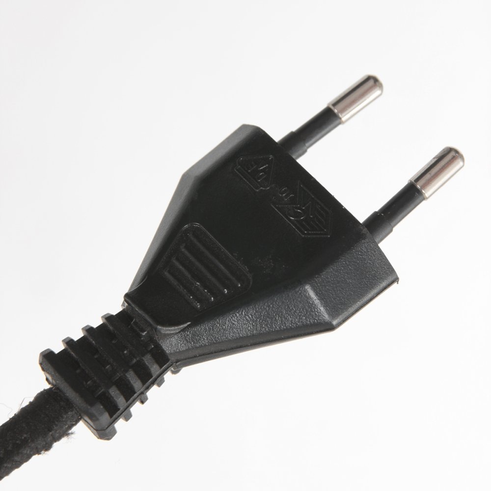 The table lamp is made of plastic, metal, and polyvinyl chloride (PVC), ensuring durability and stability. The Euro plug allows for easy power connection, while safety is ensured with protection class 2.