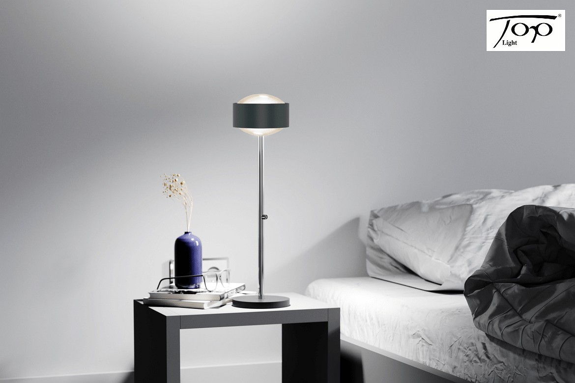 The award-winning design of the LED table lamp PUK MAXX EYE TABLE is by Rolf Ziel. With its rigid lamp head and the built-in matte lens on the underside, it offers a modern and elegant appearance. The lamp is not only functional but also a real eye-catcher in any room.
