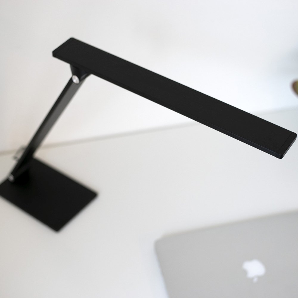 The table lamp SERENADE is made of high-quality materials such as aluminum, plastic, and polyvinyl chloride (PVC). With a weight of 1.9kg, it stands stably on your table. The square shape and the black matte design make it a real eye-catcher in your living room or office.