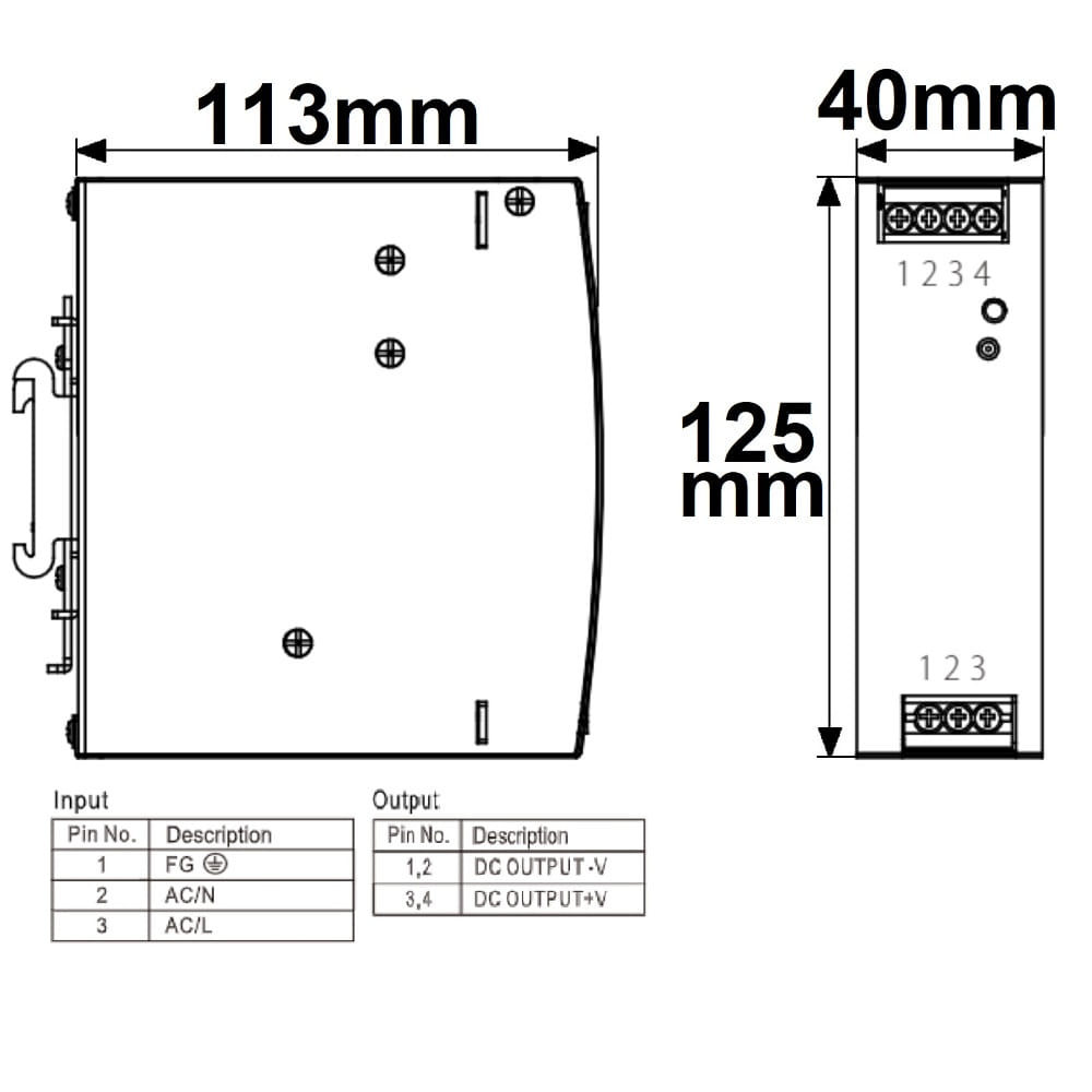 LED DIN Rail Transformer 48V, 48~55V/DC, 0-150W