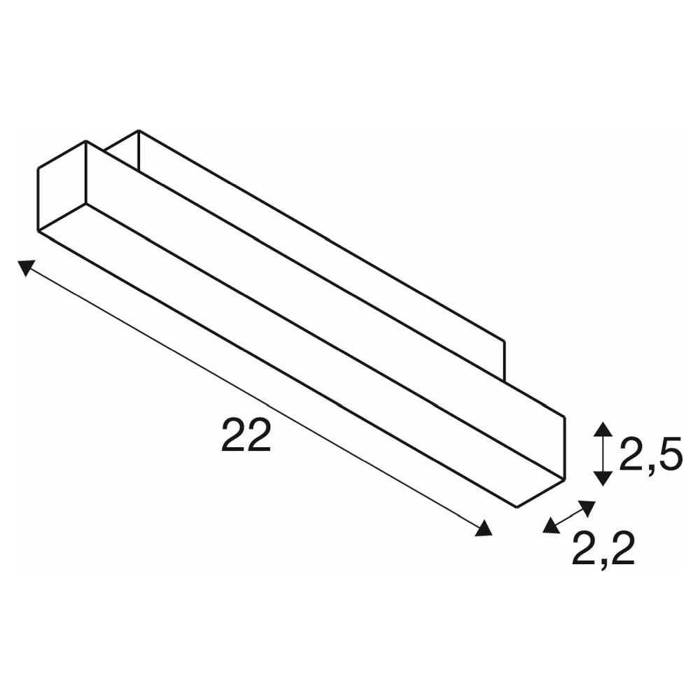 The low-voltage spotlight is made of aluminum and plastic, ensuring a robust and durable construction. The size is L/W/D: 22/2.2/5.5 cm. With a neutral white light color and an IP protection rating of IP20, this spotlight is versatile and complements various interior styles.