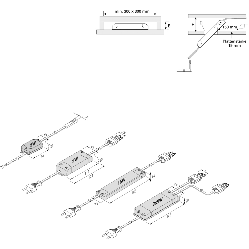Transformer LED 350/16W connection cable 200cm, with Europlug, 5-fold distributor + 4 short circuit plug