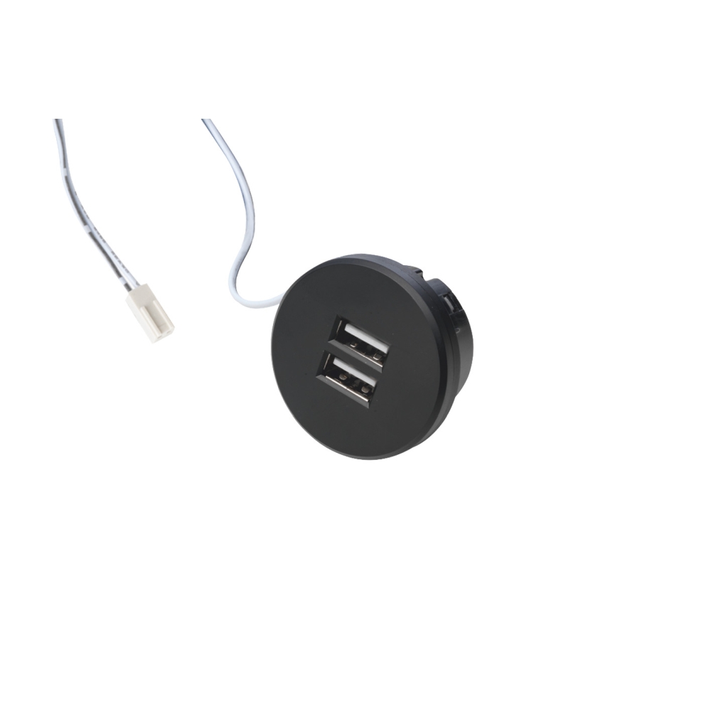 USB double socket 24Vdc, sek. 5V, 1x2.1A / 2x1.05A, max. 15W, stainless steel look, incl. adaptor ring, black