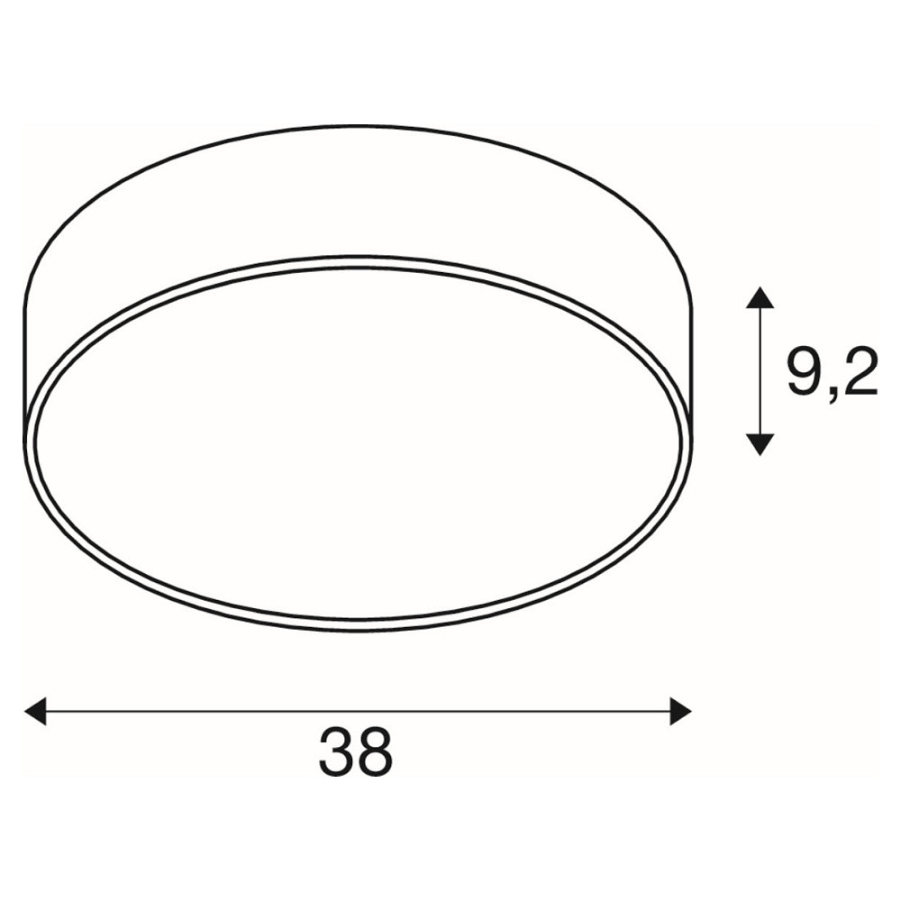 The light has a size of Ø 38 cm and a height of 9.2 cm. It weighs 2 kg and is made of high-quality aluminum and steel. The LED technology ensures high energy efficiency and a mean lamp life of 50000 hours. With a luminous flux of 2650lm in warm white and neutral white, the light provides pleasant illumination.