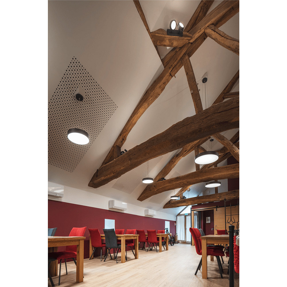 Thanks to its round design and 80° beam angle, the MEDO® PRO 60 is suitable for various applications such as ceiling and wall light, surface light, pendant light, or even as mood lighting. With accessories like a pendant set, the light can be flexibly mounted.