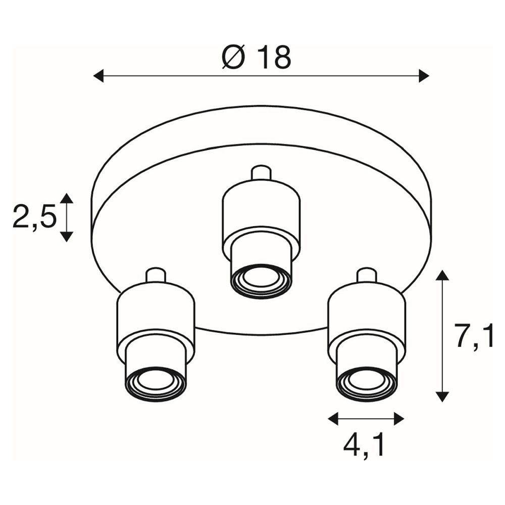 This light has 3 GU10 sockets, each capable of being equipped with a maximum of 6W bulbs. The operating voltage is between 220-240V with a mains frequency of 50/60Hz. The ambient temperature should be between -20 and +45°C to ensure optimal performance.