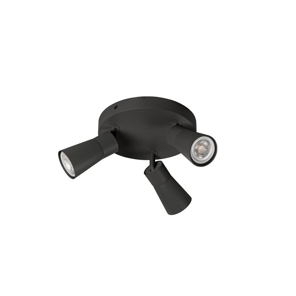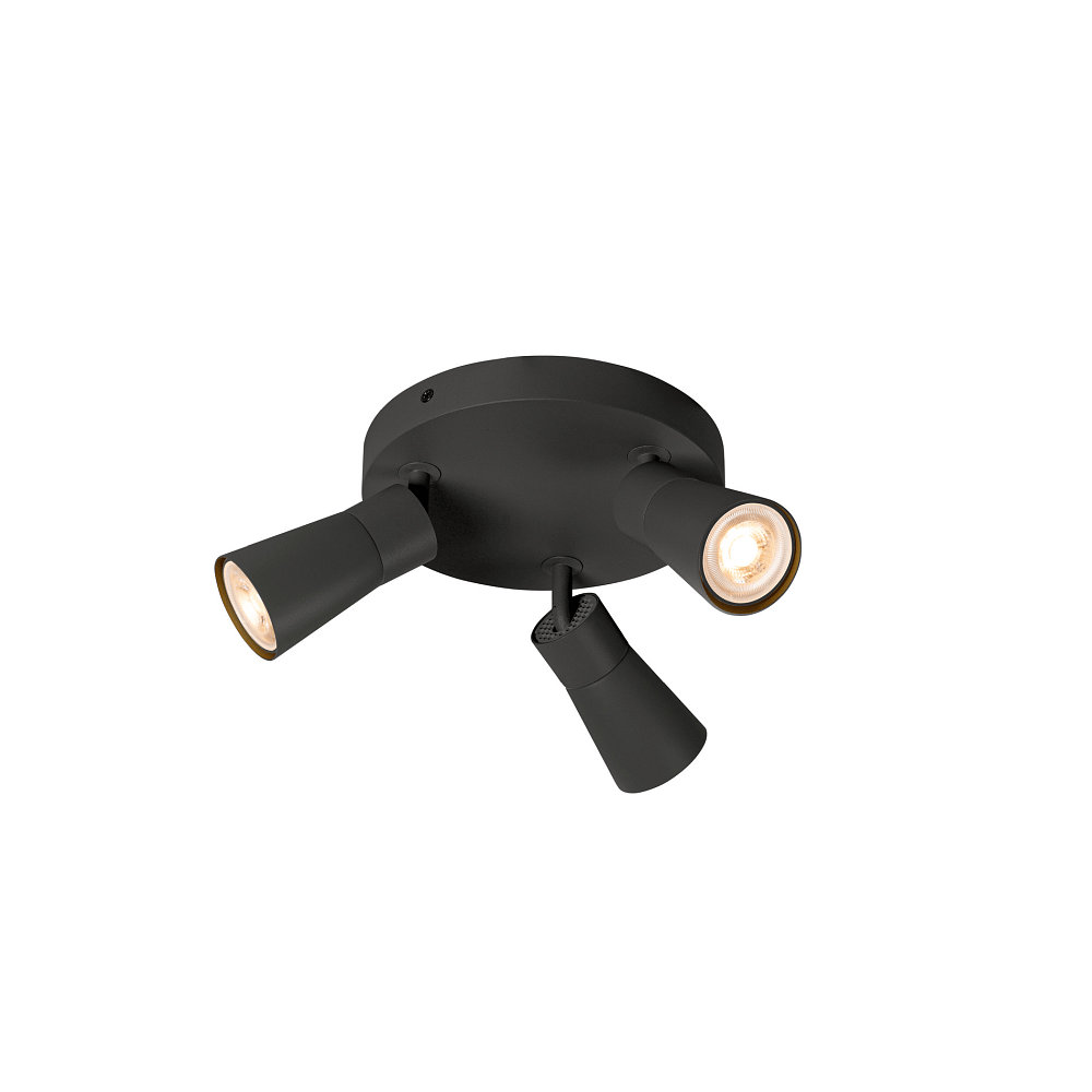 wall and ceiling luminaire PURI 2.0 - CONE 3 flames, round GU10 IP20, black dimmable