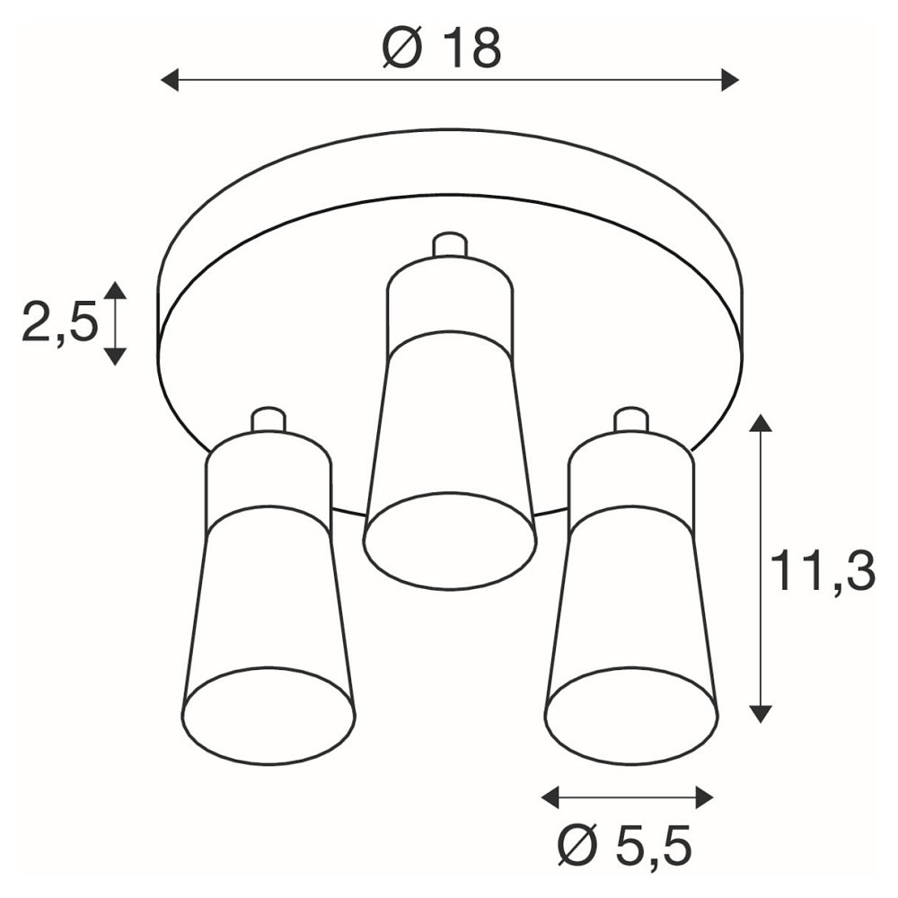 wall and ceiling luminaire PURI 2.0 - CONE 3 flames, round GU10 IP20, white dimmable