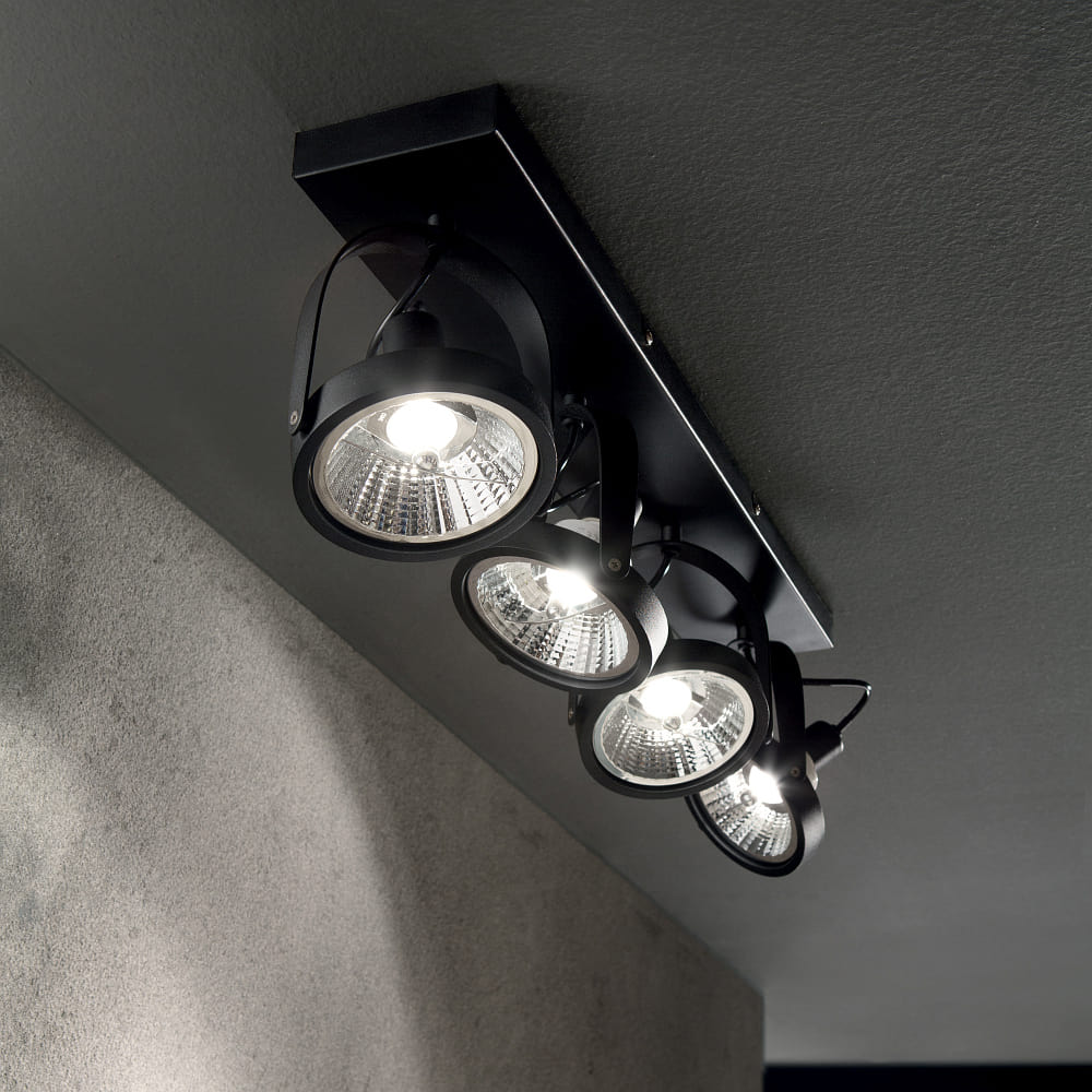 Wall-/Ceiling spot GLIM, 4 flames, incl. GU10 QPAR111 13W 3000K, black