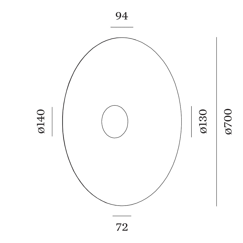 This wall light is designed for wall mounting and features dimmability via phase cut. The dimensions are 9 cm in height and 70 cm in outer diameter. The material consists of powder-coated aluminum and glass, ensuring a long lifespan of 50000 hours.