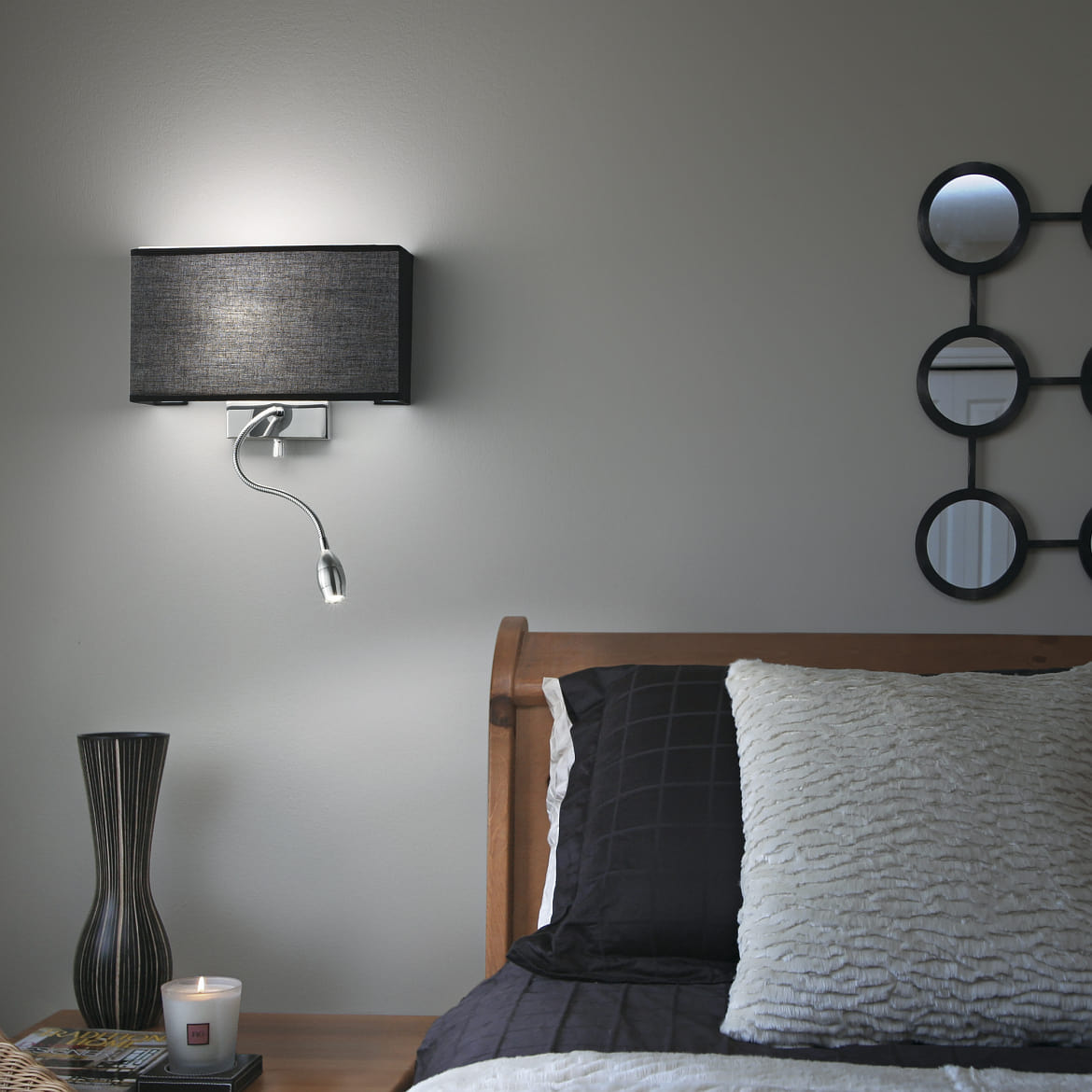 Wall luminaire HOTEL AP2, 2 flames, 1xE27 and 1xLED, black