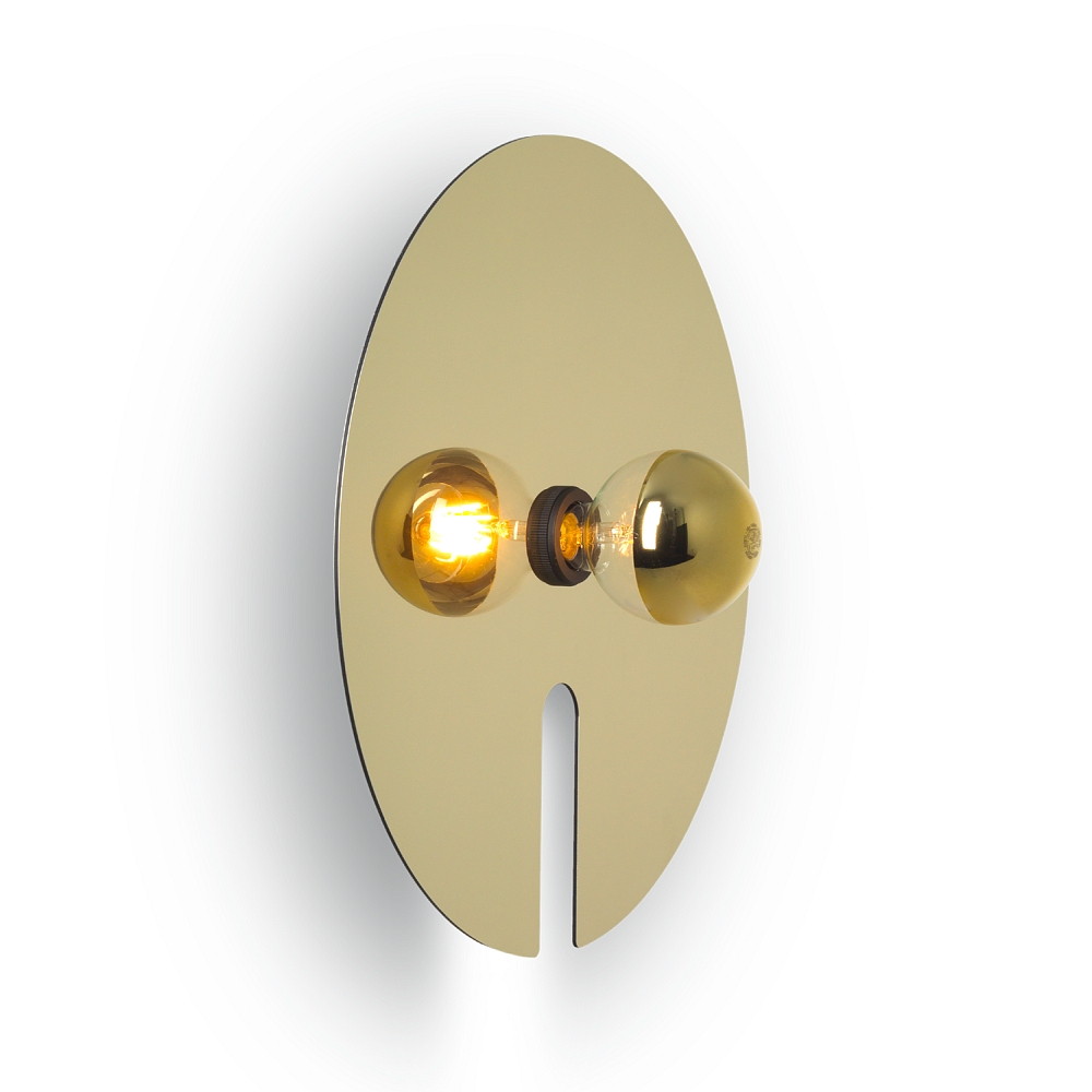 The MIRRO WALL 2.0 wall light is made of high-quality aluminum and comes in a gold color. With its round design and head mirror or globe lamp form factor, it seamlessly blends into any room and adds a touch of elegance.