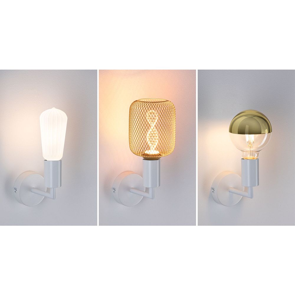 With the RAVI wall light, you have the option to actively shape the overall look by choosing the bulb. The light is excellent for combining with decorative bulbs from the METALLIC GLOW or WHITE LAMPION series, creating a modern mix & match look. Additionally, the luminaire is available in various housing colors, allowing it to better adapt to your interior. Matching pendant lights complete the harmonious lighting concept.