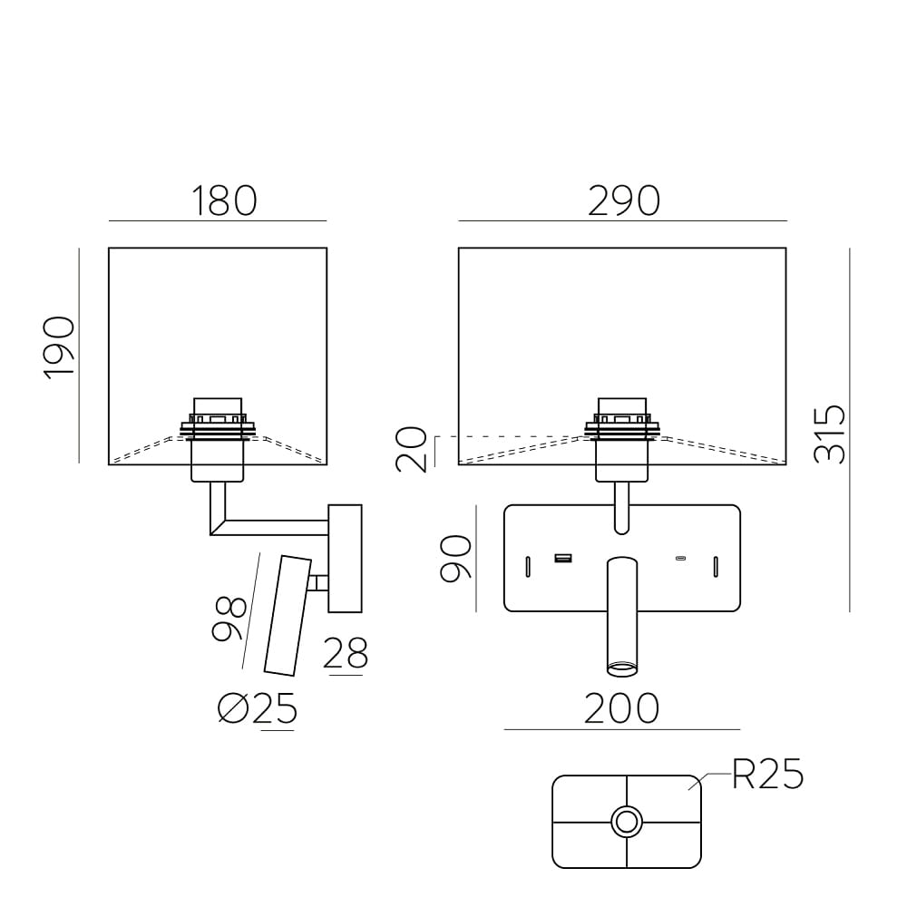wall luminaire ROMEO 16/3971 with switch, with USB connection, adjustable E27 IP20, nickel matt