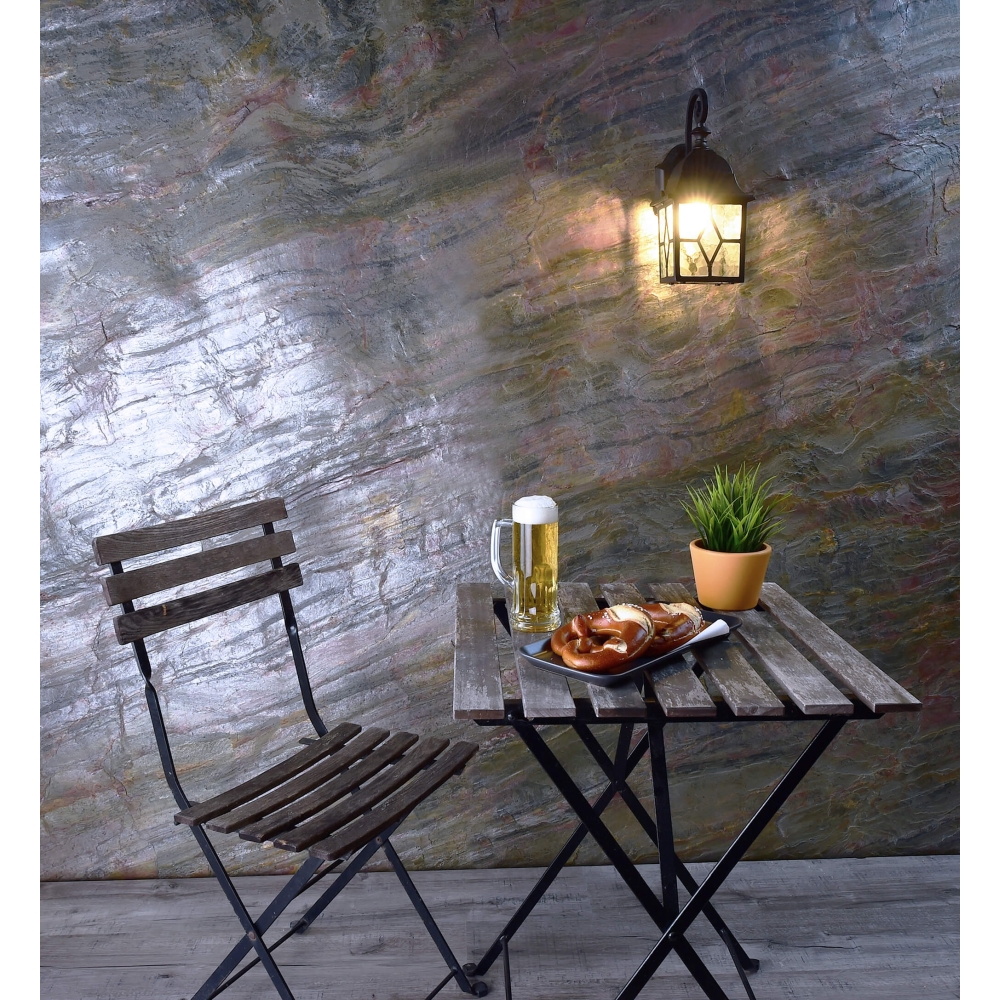 Rustic wall-mounted light SARGAS, IP23, E27, aluminum / ornamental real glass, black / clear