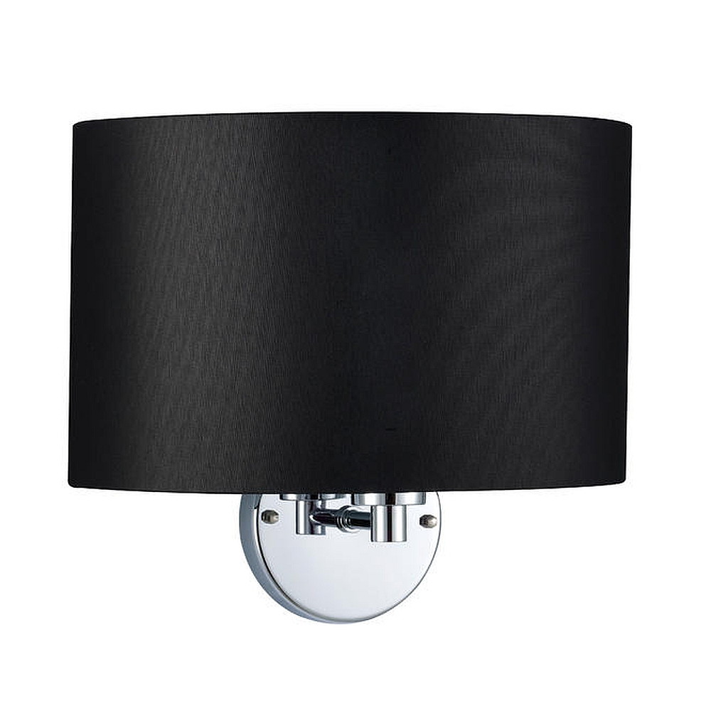 Wall luminaire with textile shade, arm 17cm / Ø 25cm, E27 max. 60W, chrome / chintz black